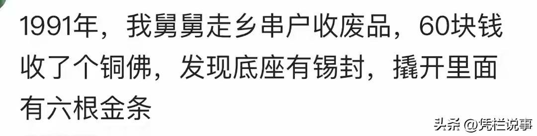 湘潭出差,错过饭点,看到有个路边摊,配的有不要钱小蝶的泡辣椒,吃着很好吃,要求买几斤带走,摊主说摊子这不够了,跟他去家里拿,距离不到一百米,要了三斤,用塑料袋装了,我让多加点泡椒水。摊主看我拿塑料袋不好拿,怕漏了,回屋给我拿了个小坛子,带耳朵那种,用绳子穿起来,放进去就不会担心洒了。过了半年发现那玩意是明代的,卖了16万。