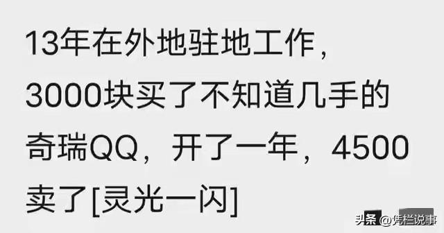 20年花了四千五给我爸买了个二手面包车代步开,后来我车撞了卖了,一直没买车,再后来我爸去世了,面包车我偶尔代步开,好几次有人要买,有人出三千,我是打算卖,但因为卖了就没车代步了就没卖,去年买新车走了报废补贴,残值卖了一千五,政府补贴一万五,厂补一万三